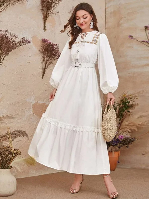 Soyez le premier à laisser votre avis sur “SHEIN Mulvari 1 pièce Robe ceinturée à ruban géométrique manches bouffantes à franges”