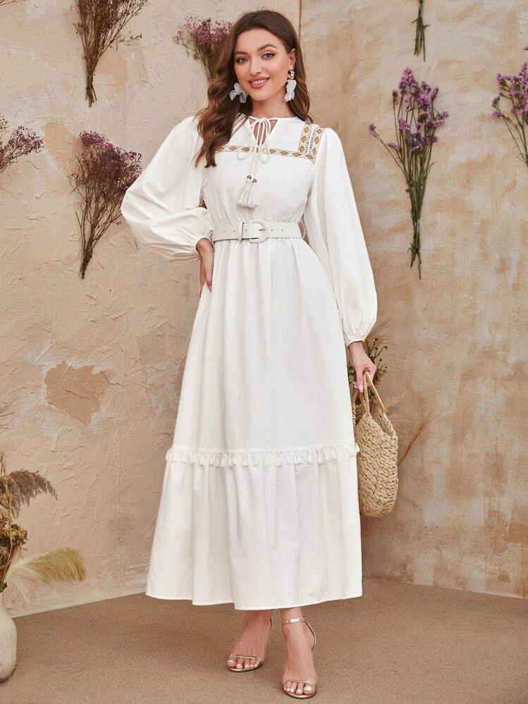 SHEIN Mulvari 1 pièce Robe ceinturée à ruban géométrique manches bouffantes à franges